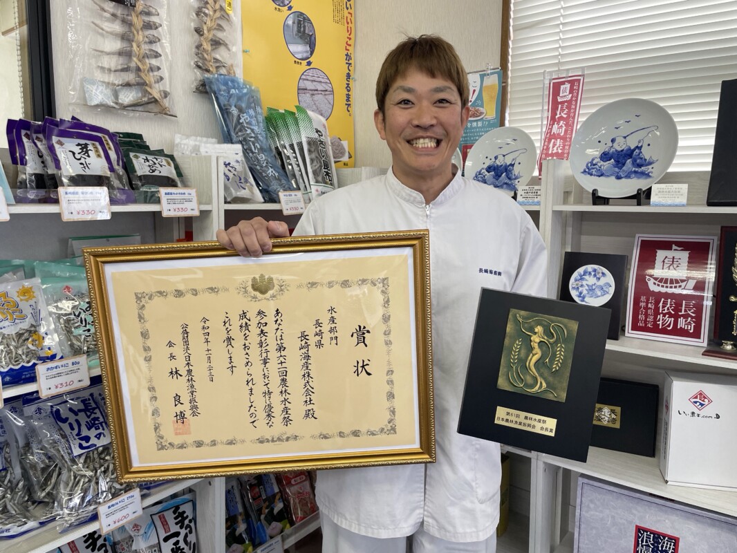 - 農林水産大臣賞(「燻しいりこ サクっ!(ガーリック味)」令和3年度長崎県水産加工振興祭水産製品品評会)
